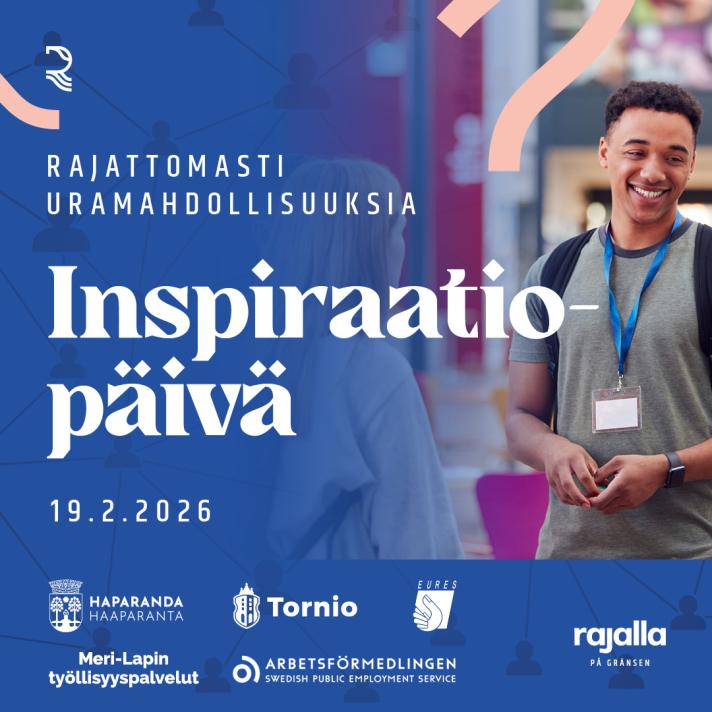 Tapahtuma järjestetään rajat ylittävää yhteistyötä hyödyntäen – mukana toimijoita Suomesta ja Ruotsista. Tarjolla on myös muita kansainvälisiä mahdollisuuksia ja kontakteja! Olitpa sitten etsimässä ensimmäistä työpaikkaasi, uutta suuntaa urallesi tai koulutusta ammattitaitosi kehittämiseksi, Inspiraatiopäivä on sinua varten!